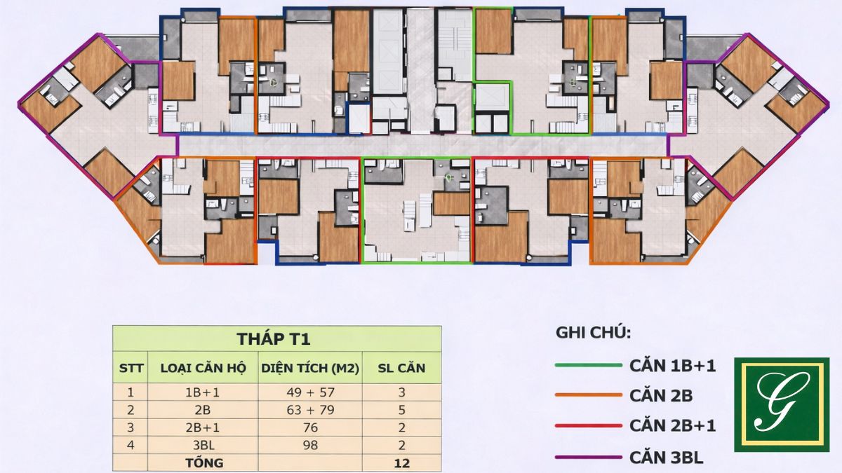 Mặt bằng căn hộ Tháp T1 của dự án Green Skyline