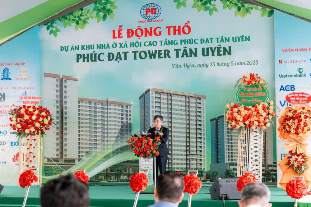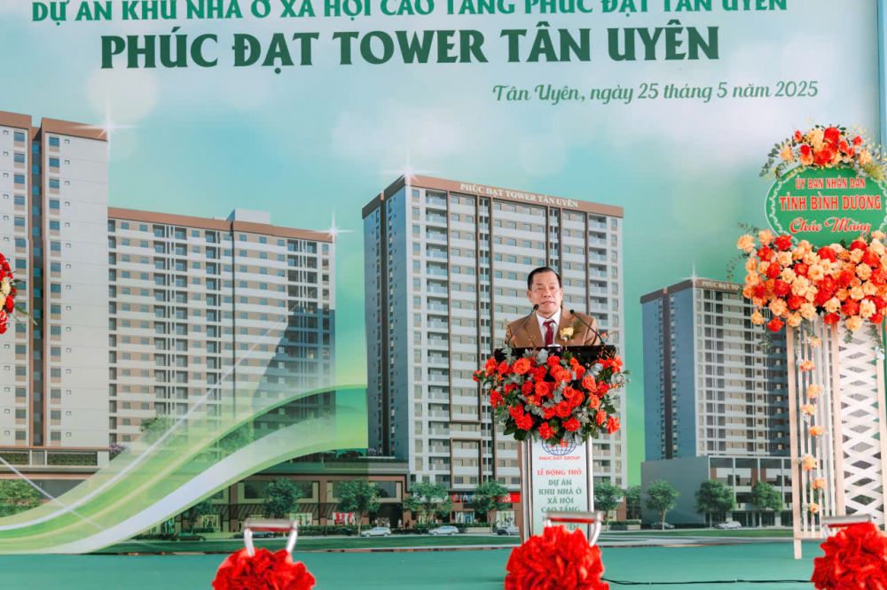 Ngày 26-5-2025 vừa qua, Công ty TNHH Sản xuất và Thương mại Phúc Đạt đã tổ chức Lễ động thổ dự án Khu nhà ở xã hội cao tầng Phúc Đạt Tân Uyên (Phúc Đạt Tower Tân Uyên). Dự án được triển khai trên khu đất rộng hơn 1,1 hecta tại Khu dân cư Phúc Đạt, phường Tân Hiệp, thành phố Tân Uyên (hiện nay là Phường Tân Hiệp, Thành phố Hồ Chí Minh), nằm tại vị trí chiến lược kết nối thuận tiện đến các khu công nghiệp, trung tâm đô thị và các tuyến giao thông trọng điểm của tỉnh